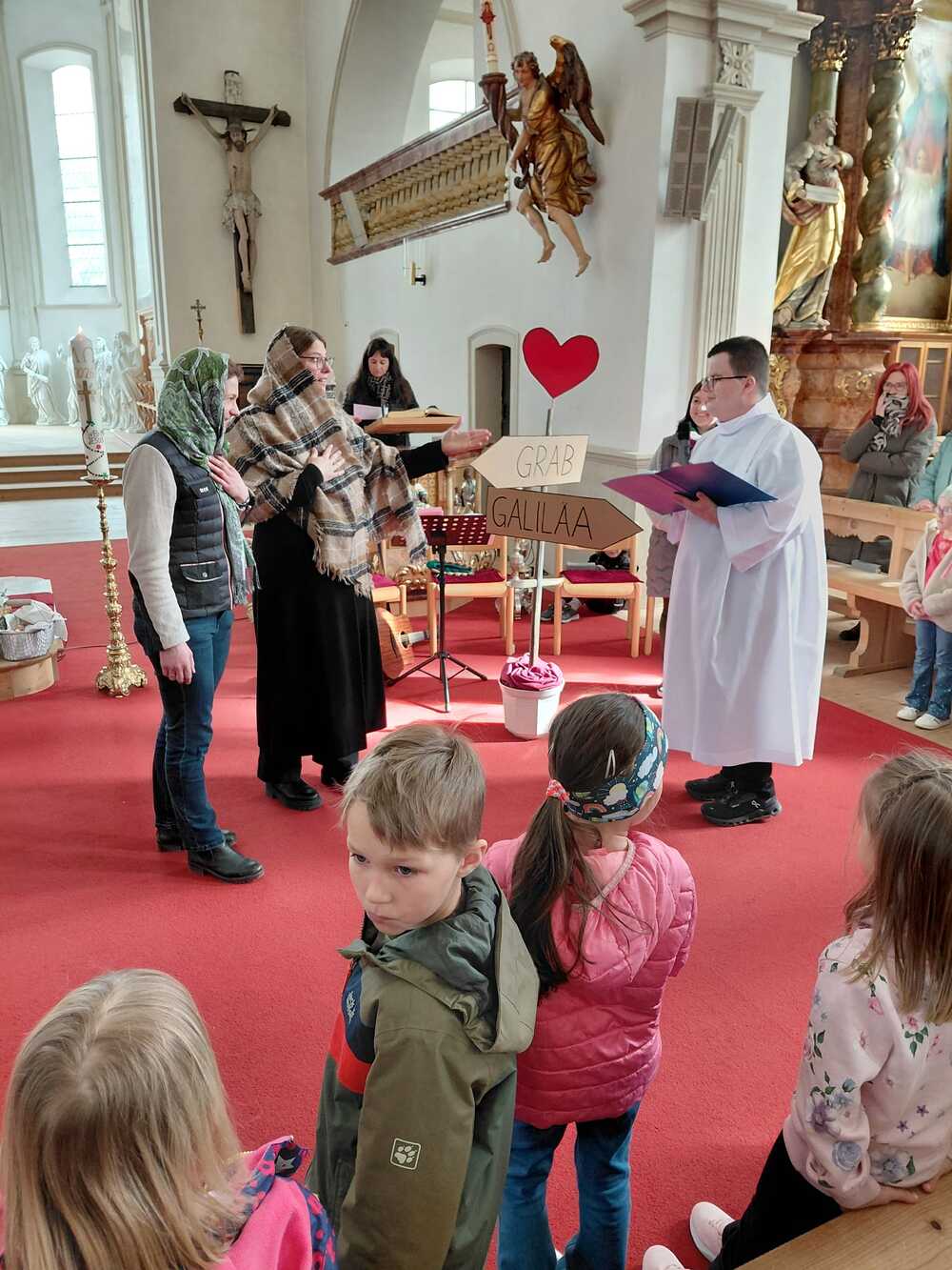 Im Pfarrverband gab es ein großes Angebot an Feiern. Am Palmsonntag ist Kaplan Albert auf einem Esel reitend von der Alten Kirche zur Neuen Pfarrkirche geritten und mit ihm die Pfarrgemeinde in die Kirche eingezogen. Bei einer vollbesetzten Kirche wurde der Einzug Jesu Christi in Jerusalem mit einem wunderschön gestaltetet Gottesdienst gefeiert.