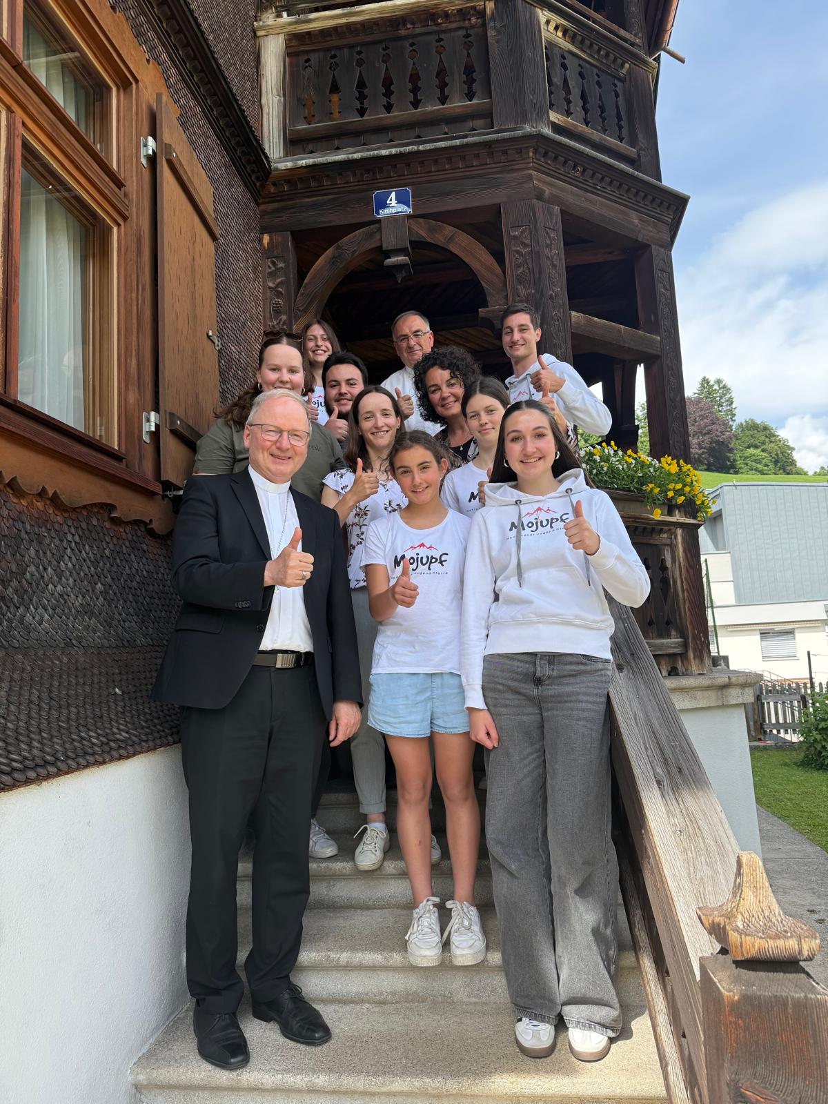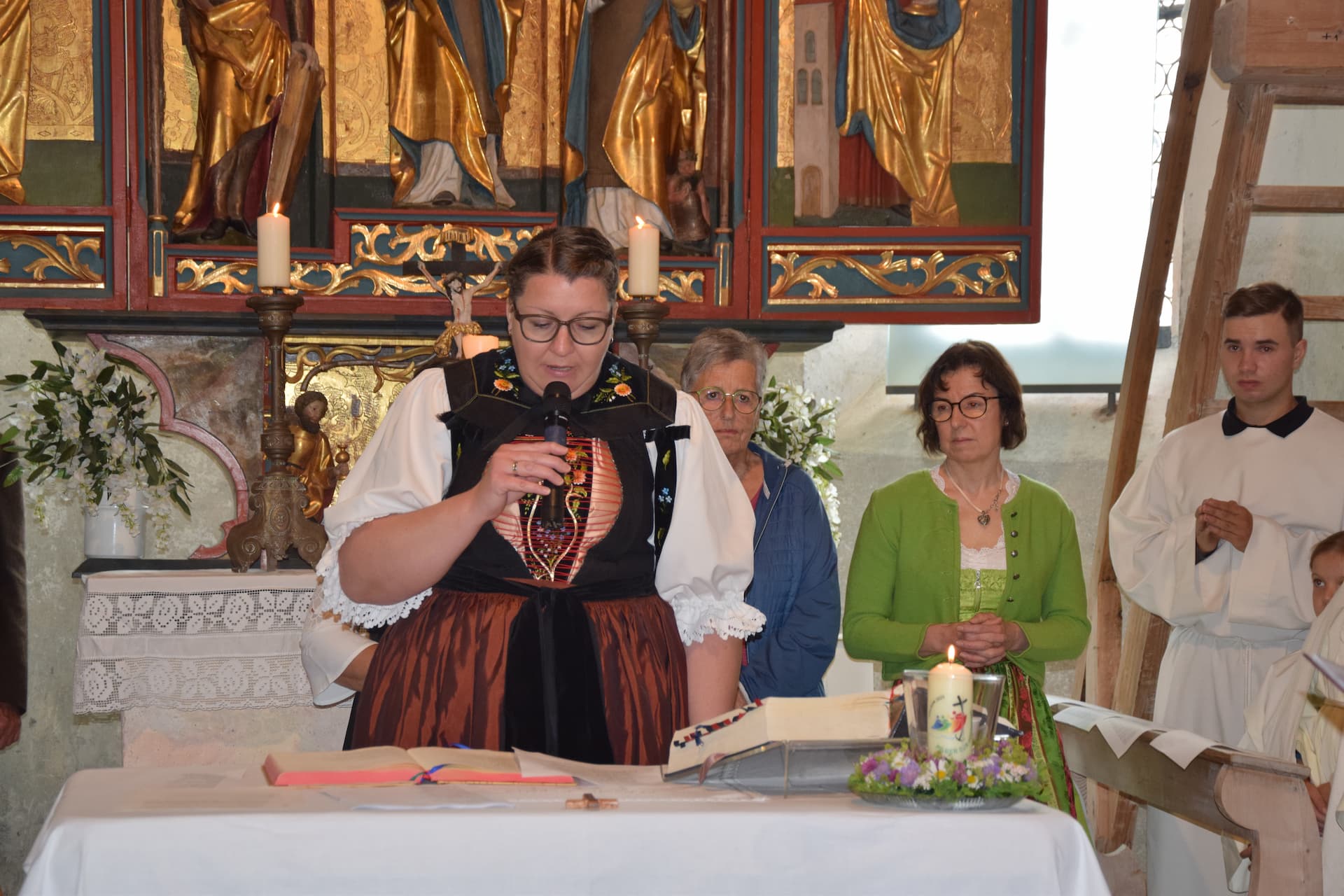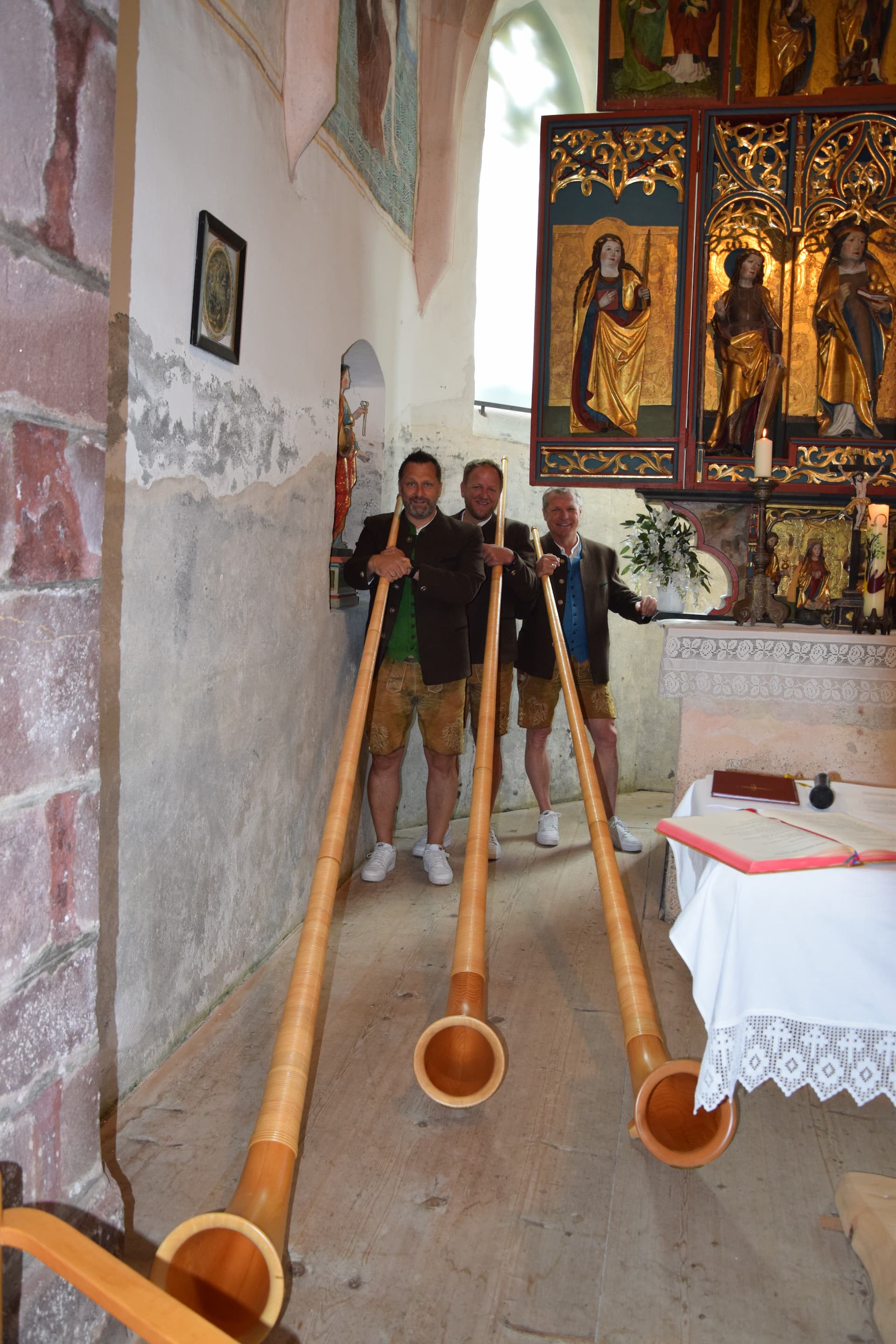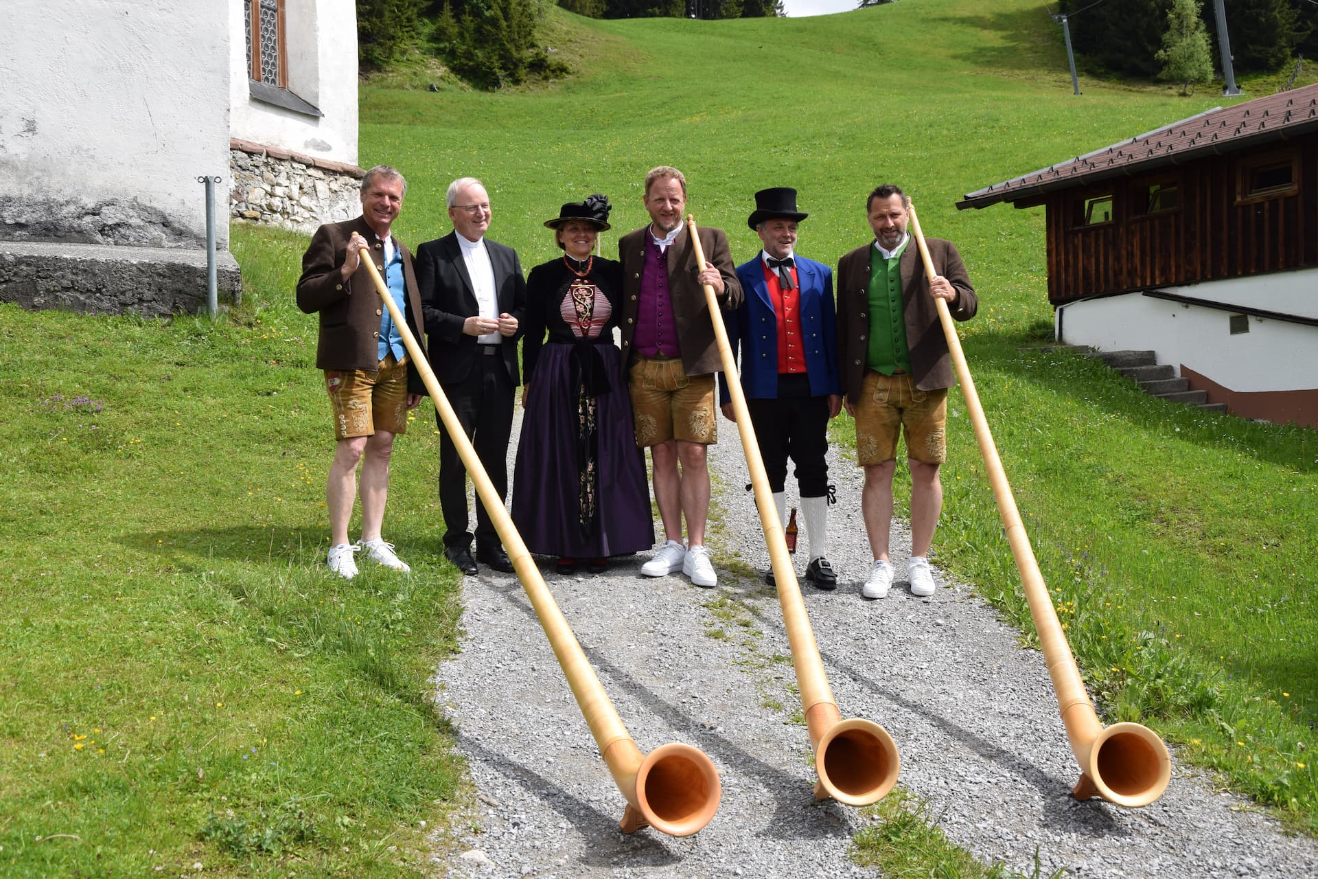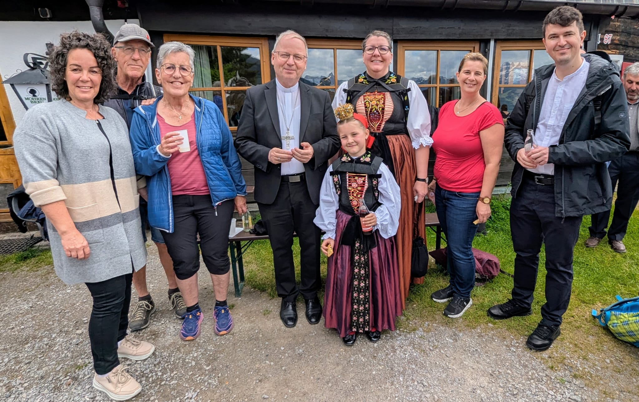 Zahlreiche Besucher, Kinder und Familien, sowie Trachtenträgerinnen und Trachtenträger haben den Gottesdienst mit Bischof Benno, Pfarrer Hans Tinkhauser, Vikar Cristian und Kaplan Albert und den Ministrantinnen und Ministranten mitgefeiert. Musikalisch wurde die Messe von den Montafoner Alphornfreunden gestaltet. Bei der anschließenden Agapé, die vom Pfarrgemeinderat Silbertal organisiert wurde, konnte man sich mit Anderen austauschen und auch mit dem Bischof ins Gespräch kommen. Bei trockenem Wetter und netten Begegnungen konnten wir den gelungenen Abschluss der Visitation gemütlich ausklingen lassen.