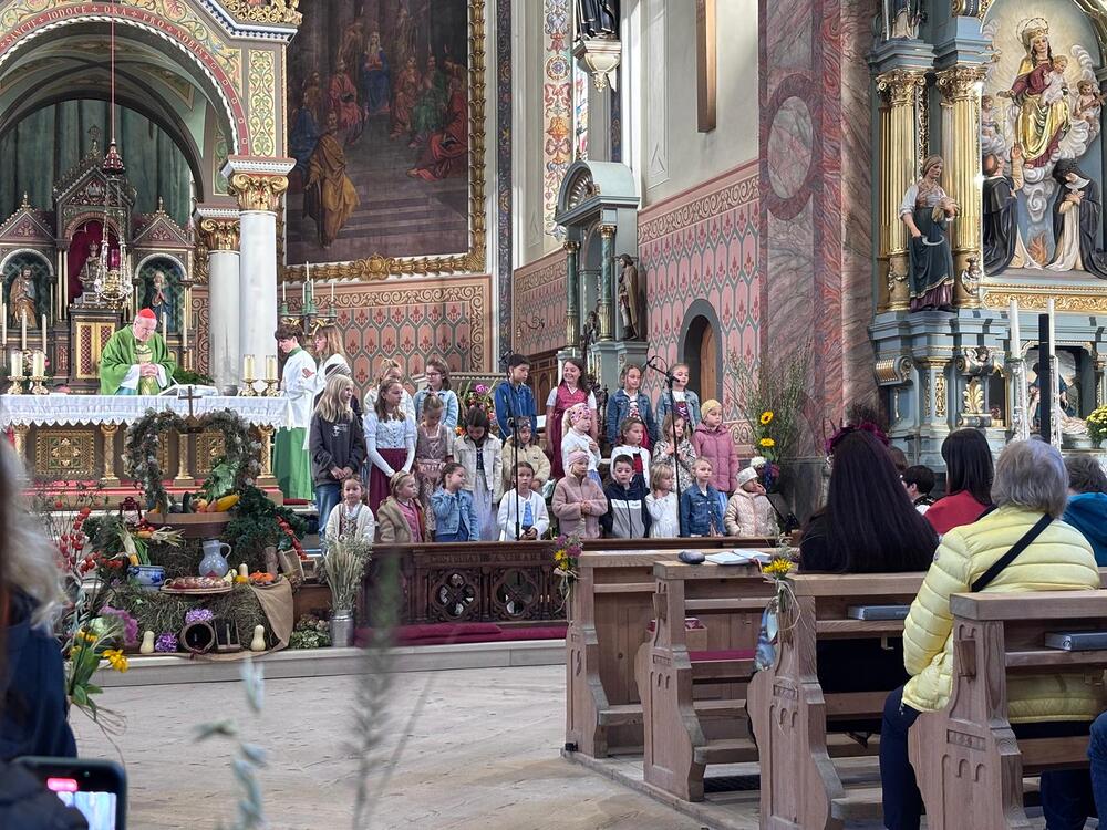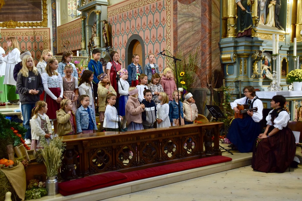 Ein Highlight der Messe stellten die gesanglichen Einlagen des Kinderchörle dar, welche voller Freude ihre einstudierten Stücke zum Besten gaben. Besonders die Kinder hatten bei der Segnung ihrer mitgebrachten Erntedankkörben ihre Freude.