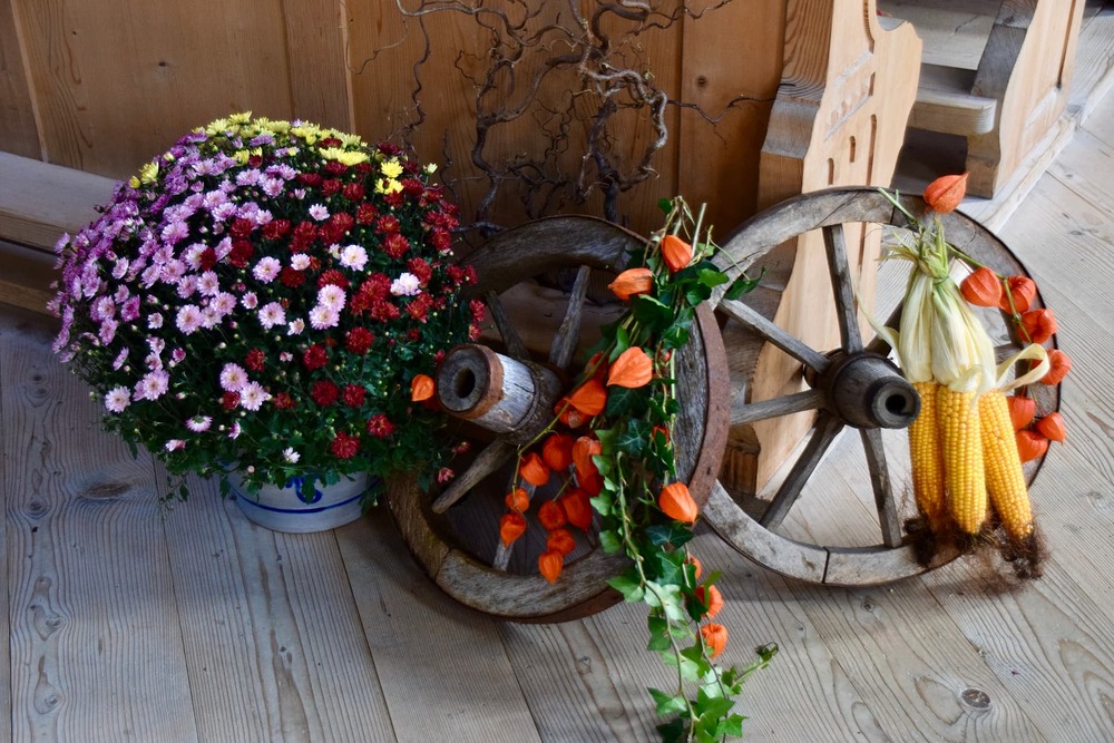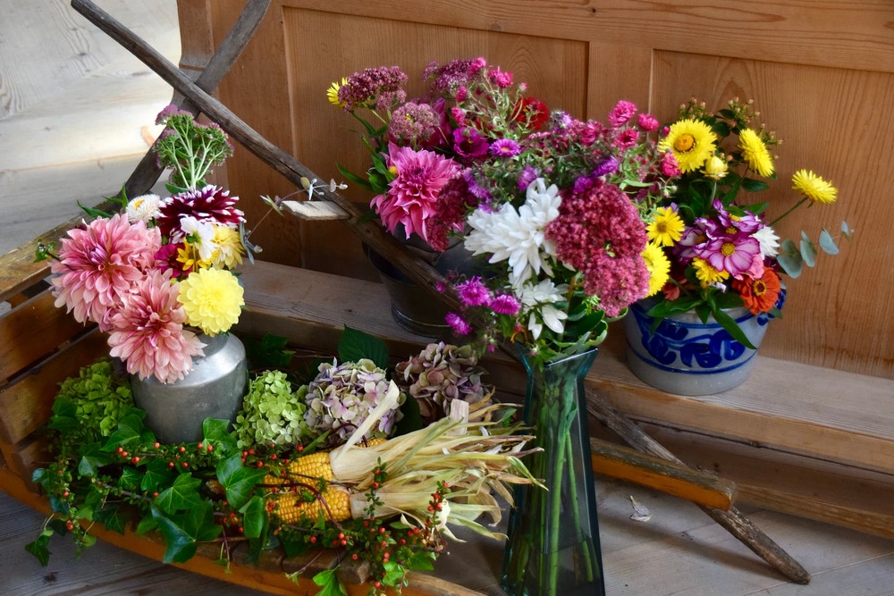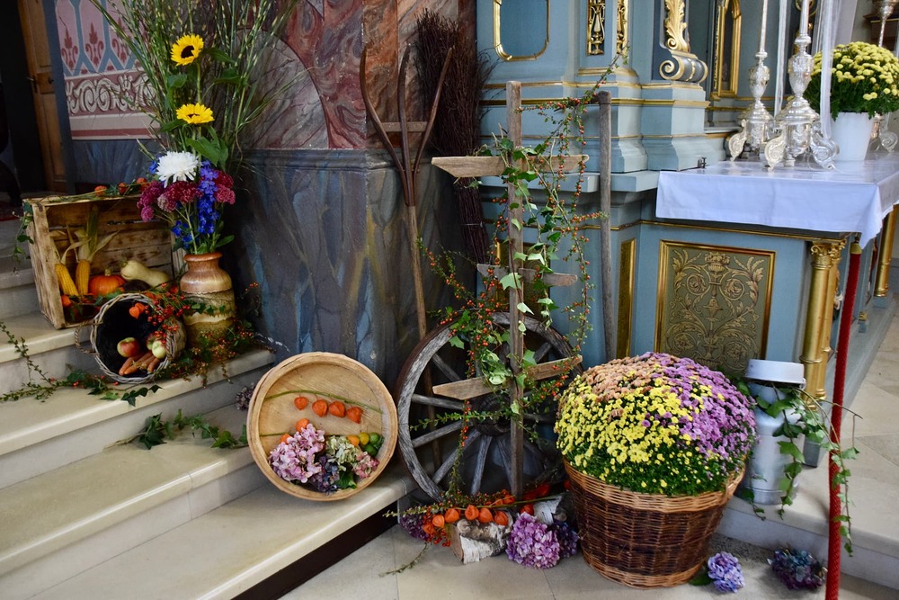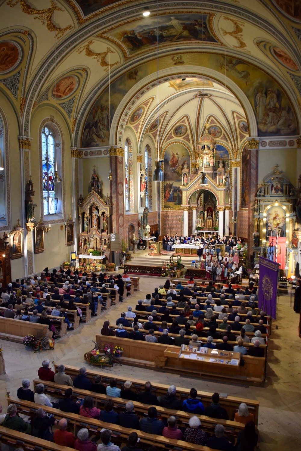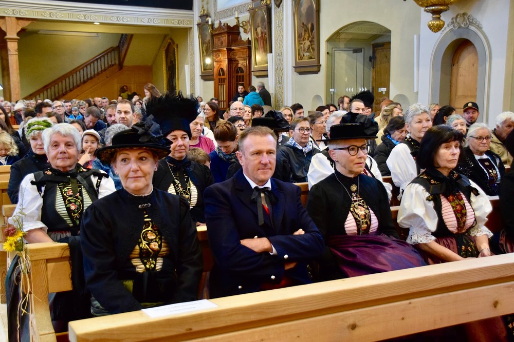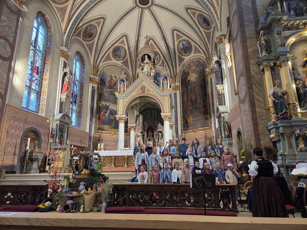 Um 9:00 Uhr versammelten sich viele kleine und große Besucher mit ihren mitgebrachten Erntedankkörben im Münster Schruns, welches zuvor von den Schrunser Bäuerinnen prächtig geschmückt wurde.