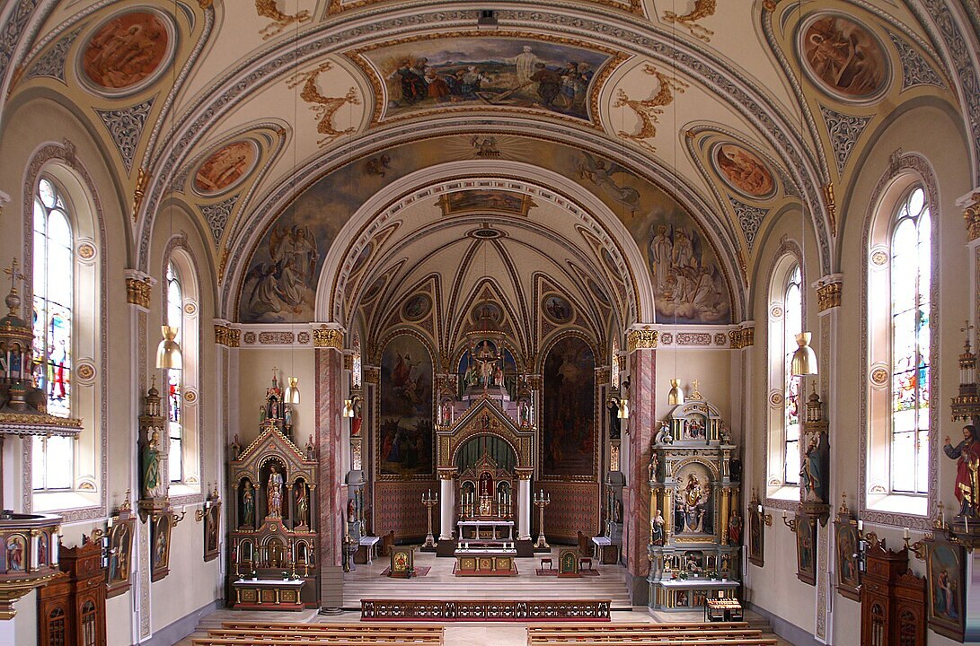 Am 10. Oktober 1862 zerstörte ein Brand das Gotteshaus. Doch schon am 15. Juli 1863 wurde die neue, später erweiterte Kirche fertiggestellt. Von dieser Kirche ist heute nur mehr der Turm erhalten. Im Jahre 1865 wurde die zu klein gewordene Kirche abgetragen und unser heutiges Gotteshaus im neuromanischen Stil errichtet. Die Ausstattung der Kirche erfolgte überwiegend durch heimische Künstler. Zwischen 1982 und 1984 wurde das Gotteshaus renoviert und damit die künstlerischen Werte erhalten.