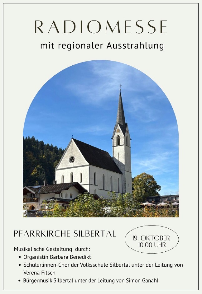 Musikalisch Mitwirkende: Bürgermusik Silbertal unter der Leitung von Simon Ganahl, Schüler:innen-Chor der Volksschule Silbertal unter der Leitung von Verena Fitsch, Organistin Barbara Benedikt